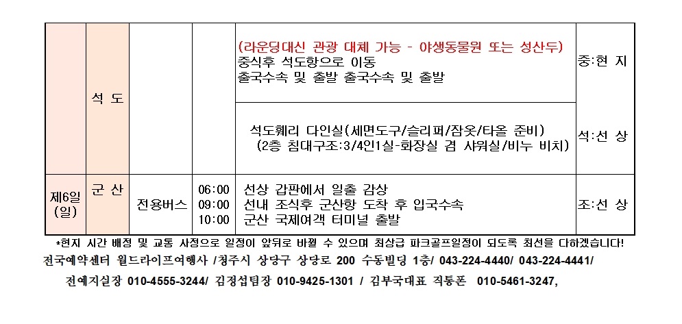 @ 4박5일 일정 (20분기준이상, 연합모객 출발은 인당 55만원/ 고객진행 문의일자 및 출발확정 가능일자 체크 안내예정)