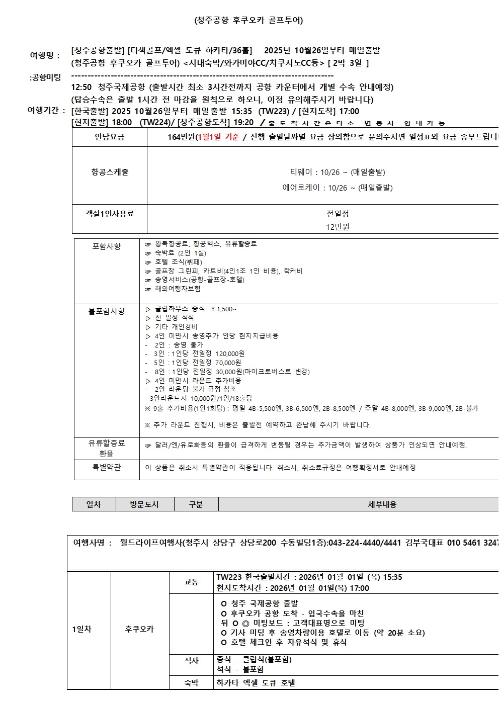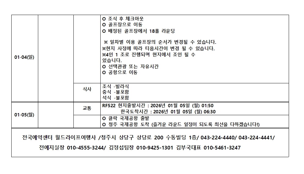 청주국제공항 2025년 10월말 -2026년 3월도 진행하는 각지역 최상급 명품골프장 선정(일본4지역,베트남5지역,클락) 라운드진행 전국예약센터 월드라이프여행사 김부국대표