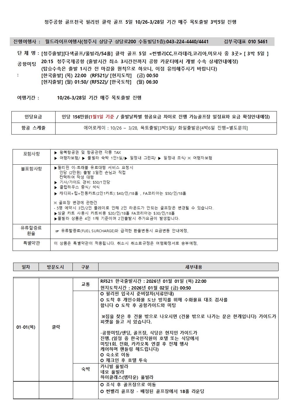 청주국제공항 2025년 10월말 -2026년 3월도 진행하는 각지역 최상급 명품골프장 선정(일본4지역,베트남5지역,클락) 라운드진행 전국예약센터 월드라이프여행사 김부국대표 010 5461 3247