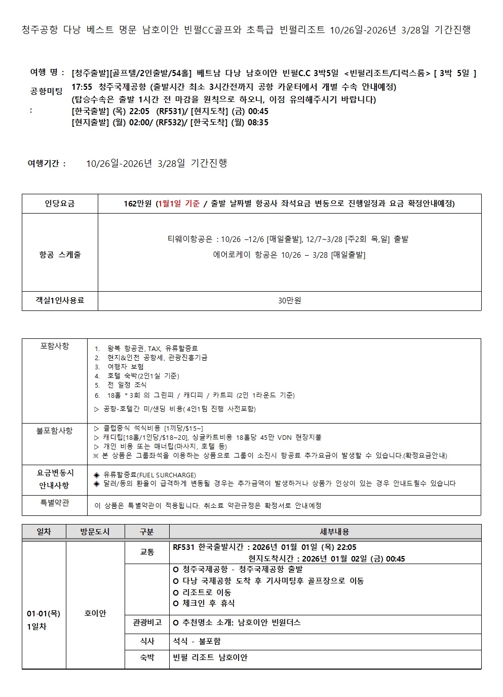 청주국제공항 2025년 10월말 -2026년 3월도 진행하는 각지역 최상급 명품골프장 선정(일본,베트남,