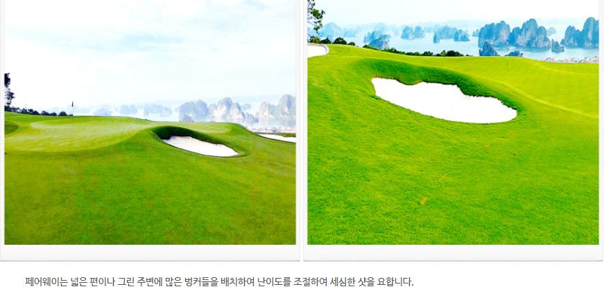✅ 하롱베이 지역은 베트남의 가장 아름다운 세계적인 자연 경관을 자랑하는 곳으로, 여기에 세계 최고 수준의 초특급 명품 골프장들이 자리 잡고 있습니다. 각 골프장은 아름다운 자연을 배경으로 한 독특한 설계와 특색있는 코스를 통해 골퍼들에게 잊지 못할 라운드 경험을 선사합니다.