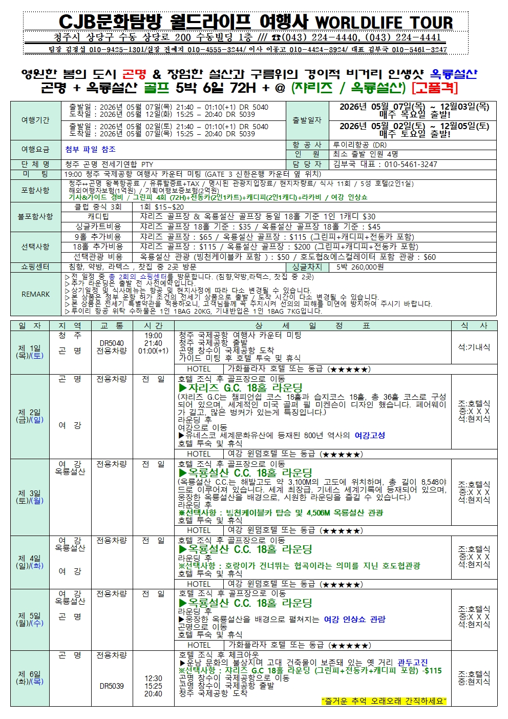 CJB문화탐방 전국예약센터 월드라이프여행사