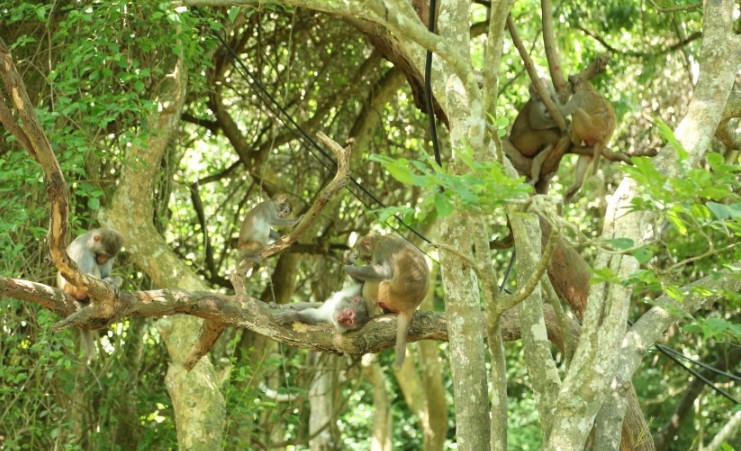 @ 원숭이 섬 (난완) 2,000여 마리의 관시 원숭이가 서식하며 인간과 자연 생물의 조화로운 공존 관계 가족 단위 관광객에게 큰인기, 생태자연 관광을 즐기며 원숭이의 놀라운 기예쇼를