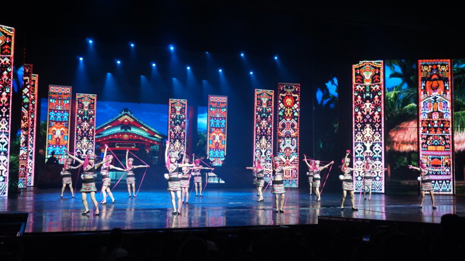 ‘삼야 천고정(三亚千古情)’ 공연: 하이난의 역사·전설·민속을 첨단 조명과 무용으로 재구성한 초대형 퍼포먼스로