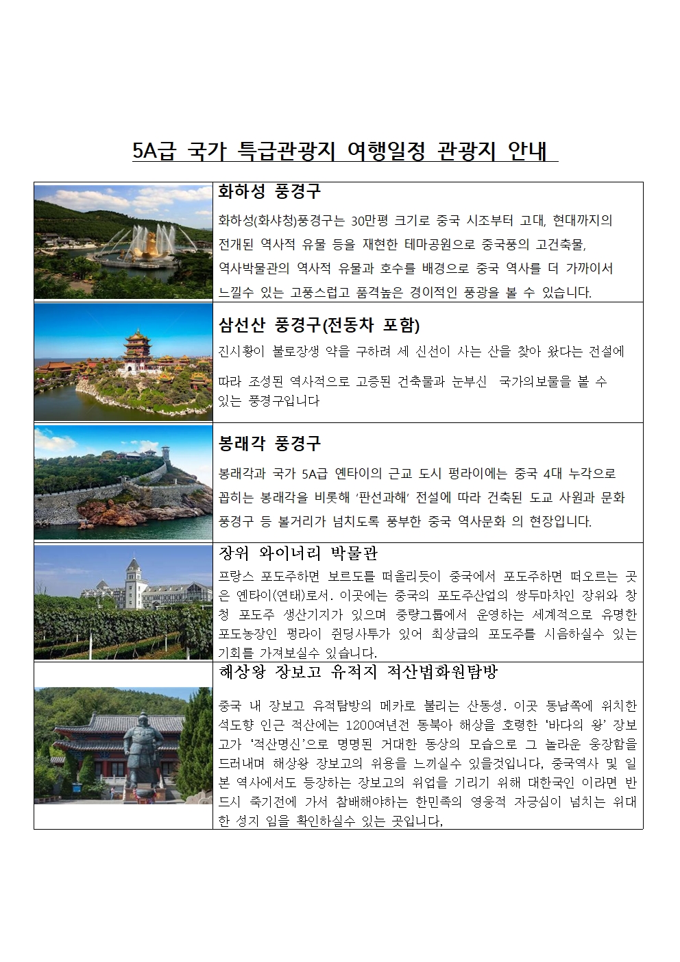 산동크루즈 4박5일 여행일정은