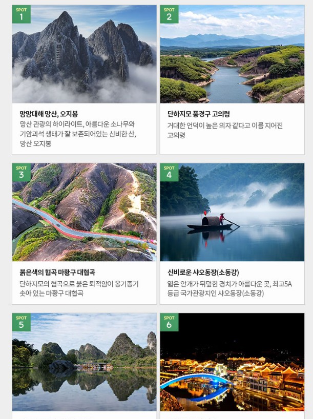 중국 감격의 대경관 최고인기지역 best 1등 진행지역 등극! 망산 오지봉 고의령 마황구대협곡 비천산 도솔동굴 소동강 동천선경
