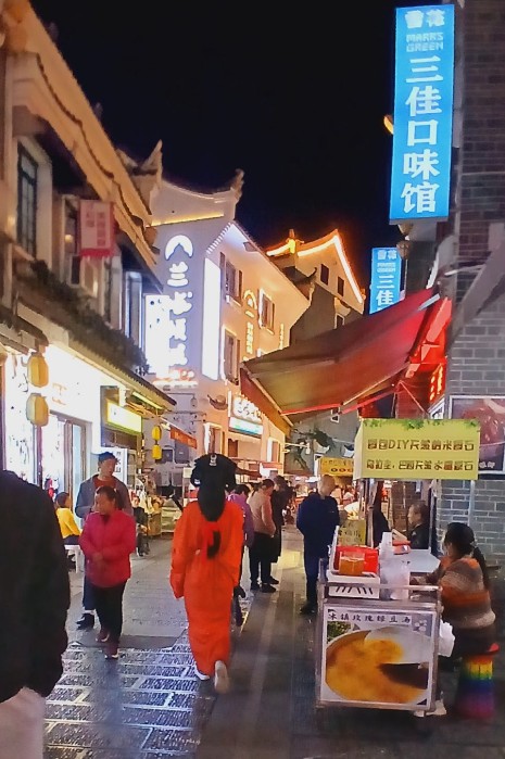 저녁 시간대에 현지 주민과 관광객이 공존하여 **중국 강남의 ‘생활 속 문화’**를 체험하는 인문학적 장소.