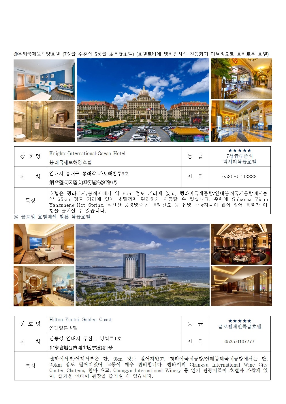 연태힐튼과 봉래 초특급 호텔-----------------------------
