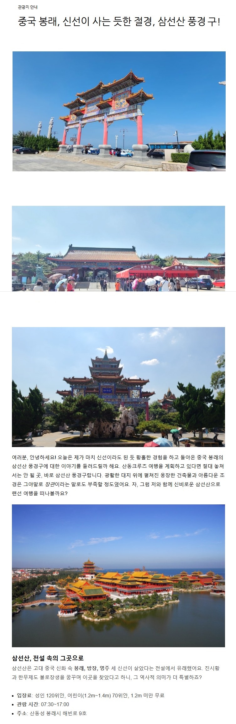 # 장보고 유적지 적산 법화원, 봉래각 풍경구, 삼선산, 극지해양수족관, 연태와인박물관, 화하성 풍경구의 다학제적 여행 가치 분석