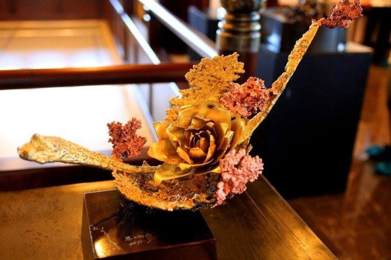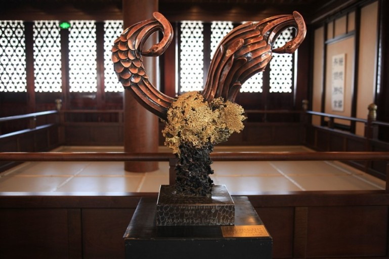 하선고는 정교한 옥조각 작품으로, 중국 전통 옥 공예 기술의 세계최고의 정수를 보여주는 문화재입니다. 중국 문화에서 옥은 미덕과 순결을 상징하며, 이 작품은 도교적 신선 사상과 결합되어 영적 승화를 표현하고 있습니다. 옥조각 기술은 중국 수공예의 전통을 이어받은 중요한 무형문화유산으로, 방문객들은 이곳에서 중국 공예미술의 최고의 진수를 감상할 수 있습니다 .