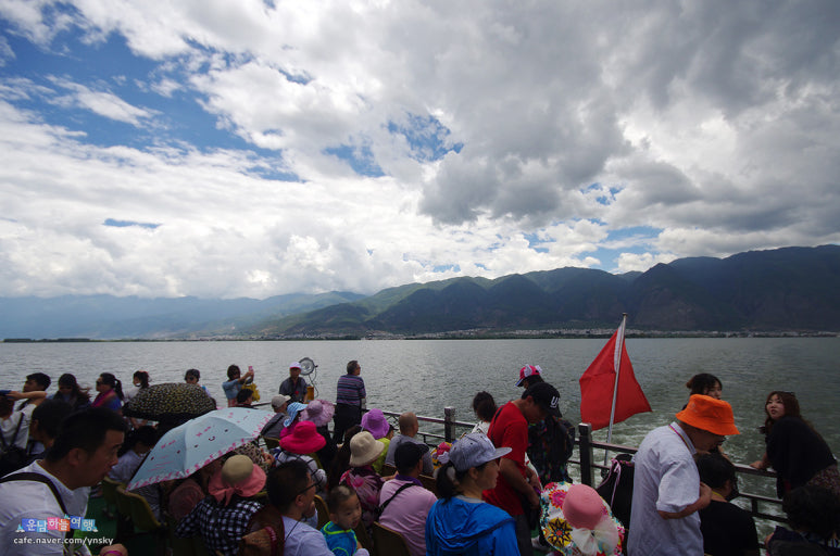 호수 모양이 귀(耳)를 닮아 '얼하이(洱海)'라 불리며, 해발 1,972m 고원에 위치한 면적 249㎢의 거대한 담수호입니다. 동서 너비는 평균 7-8km, 길이는 40km에 달하며, 특히 호수 서편에 병풍처럼 펼쳐진 창산의 눈 덮인 봉우리가 맑은 호수면에 비치는 풍경은 최고의 절경으로 꼽힙니다. 겨울에는 시베리아에서 날아온 붉은부리갈매기 철새 떼가 장관을 이루기도 합니다.