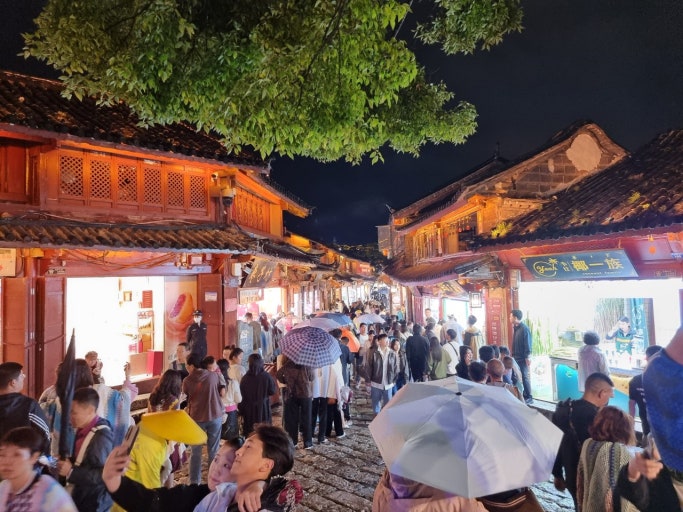 인문·관광 가치: 고대 차마(茶马)로와 남방 실크로드의 교차점으로서 민족 교류의 실체(건축, 수로망, 동바 문자·의례 등)의 교류와 소통을 보여줍니다. 보존된 전통가옥·수로·공공광장·전통공예가 차원높은 관광자원으로 공인빋고 있으며, 야간 보행·야경 투어(고성 야경)은 체험형 관광(야시장·음식·공연)으로 큰인기를 보여주고 있습니다.