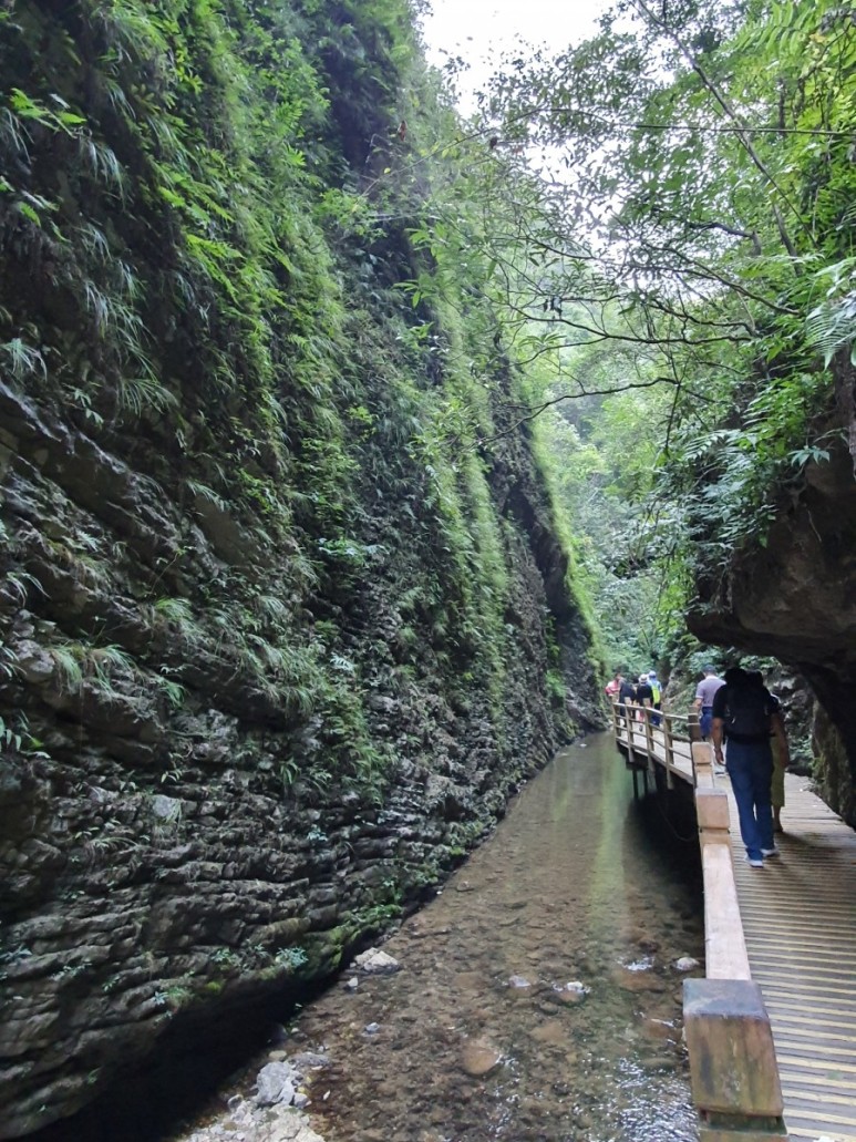 십리화랑(十里畵廊)은 말 그대로 십여 리 계곡의 형상이 산수화 전시장에 온 듯했다. 입구 안내표지판에 쓰인 '산수화의 원본(山水畵之原本)'이란 표현에 공감이 바로 갈수밖에 없는 웅장한 대자연의 모습이 아닐수없다할것이다. 무릉의 어부가 계곡을 따라 배를 저어가다가 길을 잃고 찾아든 곳은 도화원이 아니라 바로 여기가 아닐까 여겨질 정도였다. 그야말로 속세의 티끌이 한 점도 없을 것 같은 선경이 아닐수 없다할것이다.