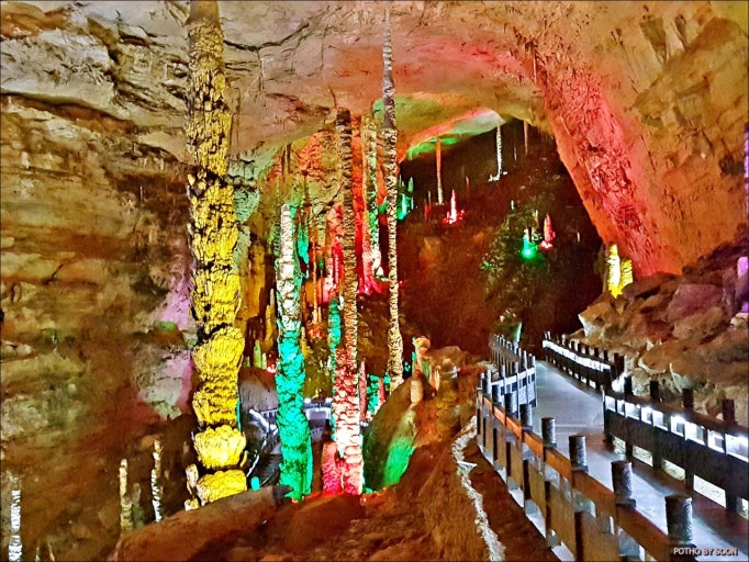 장가계가 자랑하는 황룡동굴에 들어서면 그 엄청난 규모의 크기에도 놀라지 않을수 없고 다채로운 동굴 석주물등에 스토리를 입힌 전설적 이야기도 인상적이며 동굴 지하호수에서 보트를 타고 한참을 유람할지면 이곳이 바로 지하세계 무릉도원이 아닌가하는 착각이 들 정도로 놀라운 지하 동굴의 대비경이 곳곳에서 펼처지고 있다할것이다..