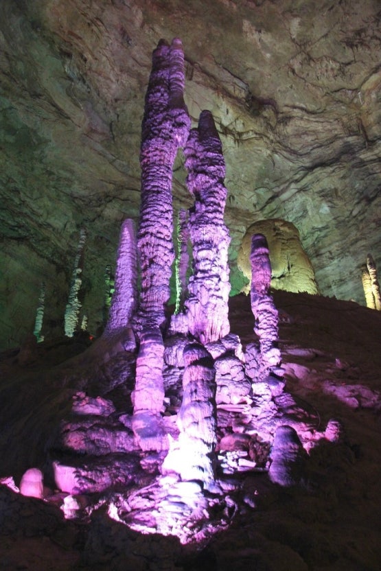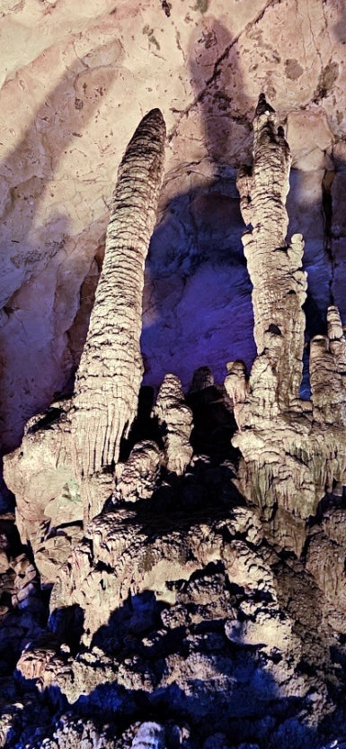 이 석순은 굵은 부위가 40㎝, 가는 부위가 10㎝이며, 천장까지는 6m 더 자랄 수 있는데 이 석순이 천장에 닿으려면앞으로 6억 년이나 더 걸린다고 한다. 참고로 이 석순은 보험에도 가입되어 있는데 그 금액이 우리 돈으로 160억 원 정도에 달한다고 한다. 노인과 골뱅이 모습을 한 석순도 볼 수 있었는데 여기에는 전설이 하나 있다. 한 나무꾼 노인이 선녀와 결혼을 하고 싶어 했다. 그래서 골뱅이를 먹으면 결혼을 할 수 있다는 말에 그 골뱅이가 자라기만을 기다리고 있었다. 그런데 그만 앵무새가 먼저 골뱅이를 먹어 버리는 바람에 결혼을 할 수 없었다는 이야기가 전해진다고 한다.