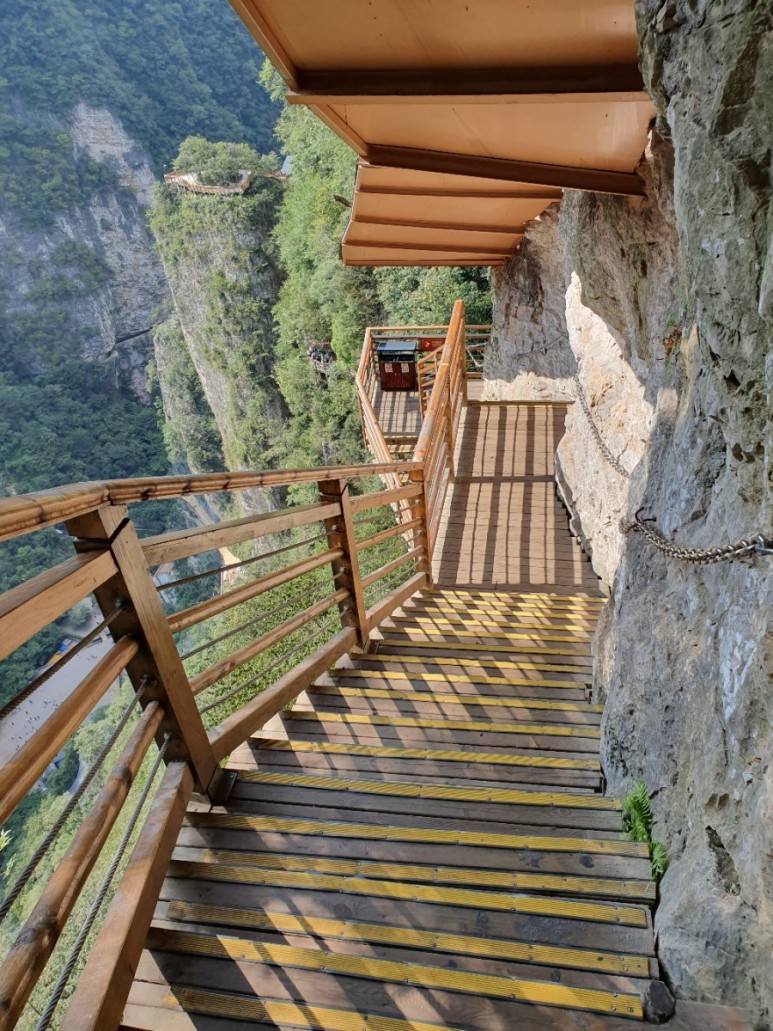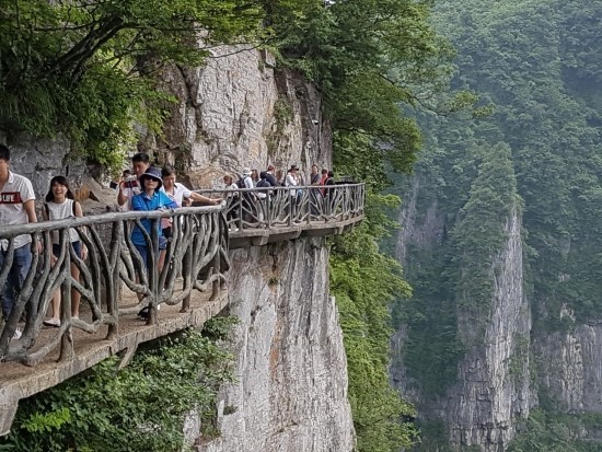 요즈음 한국에서 뜨는 트레킹코스인 올레길, 둘레길등과 같이 장가계 대협곡에도 트레킹 코스등을 다양하게 개발하여 진행중인데. 가파른 절벽 협곡에다가 건축이 전혀 불가능해보이는 나선형 계단길 조성 및 수백미터 절벽옆으로 붙여서 만든 잔도길의 트레킹 길을 만들어 놓았을뿐 아니라 높은 산위쪽으로 물을 인공적으로 끌어다가 엄청난 길이로 떨어지게한 멋진 인공 폭포(가이드가 얘기하지 않으면 모름) 만들어놓아 쏟아지는 시원한 폭포수를 보면 와우! 하는 탄성을 자신도 모르게 곳곳의 절경앞에서 저 절로 탄성할수밖에 없는 탁월하고 기막힌 여러 코스를 자연적인 놀라운 경관이 수없이 존재함에도 불구하고 인공적인미 까지를 가미하고 응용하여 관광자원을 지속적으로 만들고 발굴하고 있다할것이다. 최근에 다시 장가계 여유국 초청으로 방문해보니 짚라인, 번지점프, 봅슬레이처럼 타고 내려오는 미끄럼틀 레일설치등 산악스포츠 체험시설까지 마련해 놓아 여행의 즐거움 더하게 하고있다,,