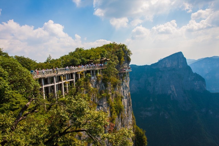 중국 호남성내의 서북부에 위치하고 있는 장가계는 1992년 9월 25일에 중국 정부에서 국가산림공원 및 여행특수지역으로 지정하여 중국 관광 투자사상 엄청난 자본을 투자하여 세계최고의 놀라운 관광 인프라를 만들어 놓았다. (천문산 케이블카는 세계 최장길이로 (7.45키로) 최장시간소요 45분 탑승) 및 세계 최고높이인 335미터의 백룡엘리베이터를 절벽옆에 붙여 만들었고 금편계곡에서의 양편의 대경관을 볼수있도록 관광 모노레일을 조성해 놓았을 뿐 아니라 높은 절벽옆으로 만든 인공-잔도길을 구축하여 기막힌 대절경을 포인트마다 볼수 있도록 만들어 놓았다, 천문산사로 가는 잔도길 코스등을 조성해놓고있어 관광객들이 마음껏 세계최고의 눈부신 장가계의 멋진 비경의 경관 포인트를 감탄의 연속으로 맛볼수 있도록 하였다. 이는 전세계 수많은 관광객들을 불러들이기위해 산속 깊숙이 숨어서 묻혀있던 5억년전 당시 그대로 시간이 멈춰있는 생태-청정-자연의 장가계를 세계-최고의 관광지로 만들어 낸 중국정부의 자신감에서 투자되었다할것이다. 장가계가 인간의 상상력을 초월한 신비한 대장관의 모습에서 국가적 자신감을 가지고 세계최고의 비경에다 선진적인-첨단 관광인프라 구축을 대대적으로 투자한것은 세계최고의 관광지라는 국가적 자긍심의 강력한 의지의 반영이라 할것이다.
