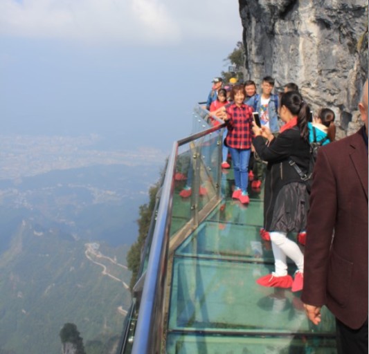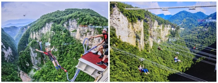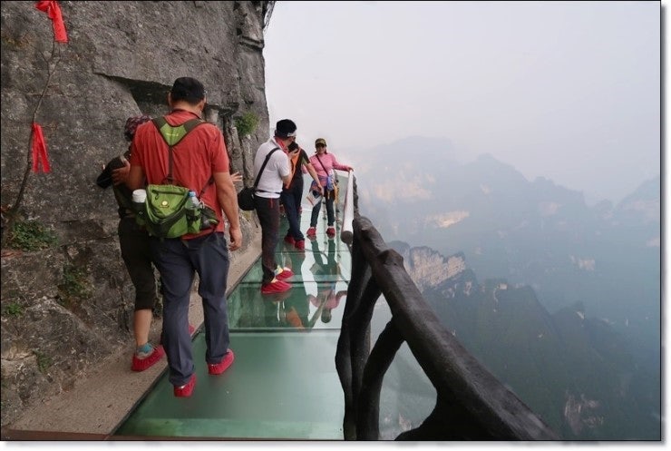 - **유리다리**: 세계 최장·최고 유리다리로, 두려움을 극복하는 불교적 "선(禅)" 사상을 반영하고 있는곳이다. 장가계 대협곡 트레킹, 번지점프, 짚라인 등을 즐길수 있다,