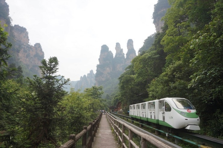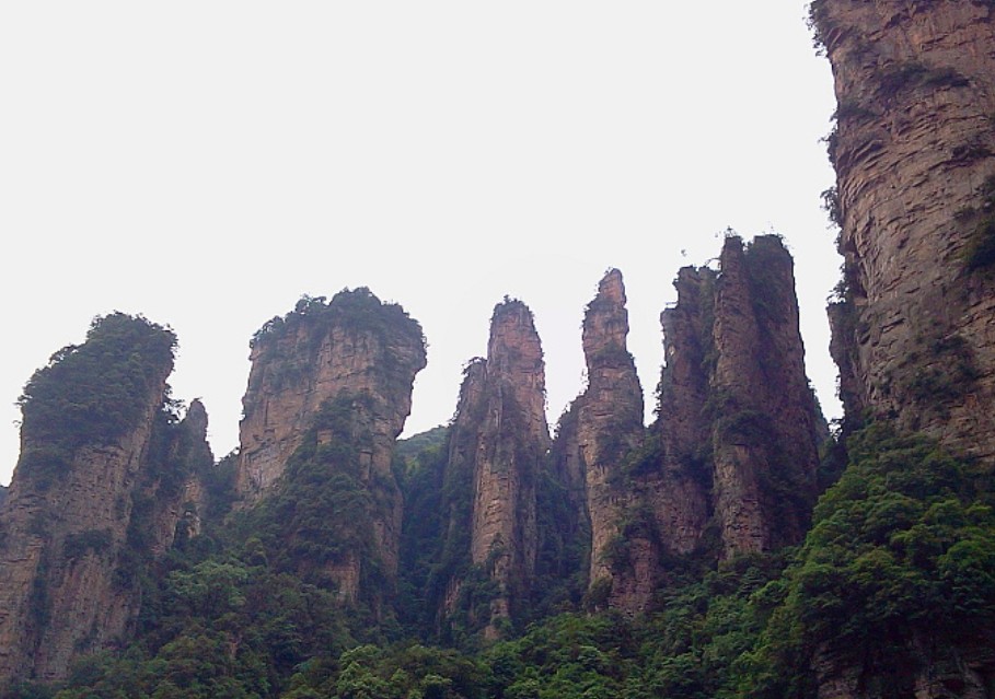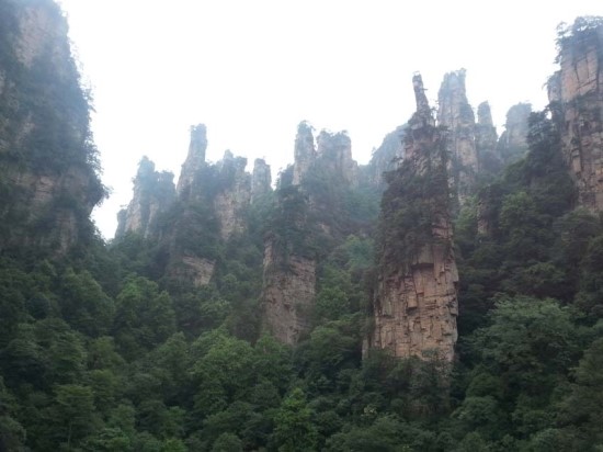 계곡을 따라 모노레일을 타고가는 동안 끝없이 펼쳐지는 절경에 경탄을 금치 못했다. 상상속에서나 볼수있는 갖가지 형상의 놀랍고 기막힌 형태의 봉우리가 무궁무진하게 이어지고 있었다. 상상을 초월하는 경치였다. 감탄과 감격으로 탄성이 절로나오는 절경은 이루 다 말로 설명할 수 없는 천혜의 경관이었다.