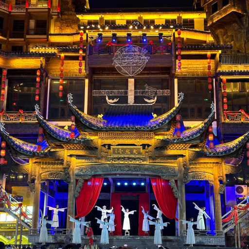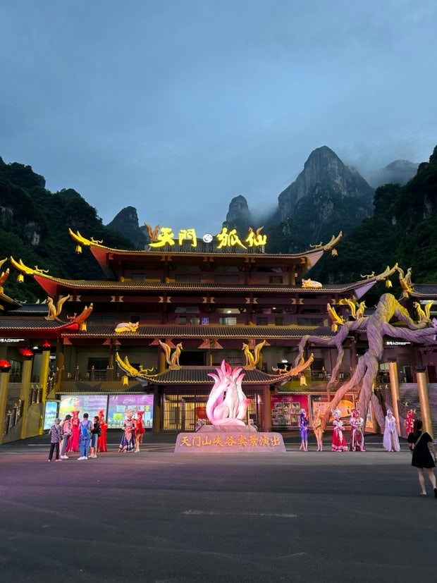 - 고대 전설을 현대적 건축 기술로 재현한 점에서 **"문화적 상상력의 구현"**으로 평가받는다. 장가계 관광의 새로운 랜드마크로, 낮에는 전통 문화를, 밤에는 화려한 조명으로 관광객을 매료시킨다 (지나가는 차창관광이지만 투어종료후 밤에 가이드와 협의하여 갈수 있다)
