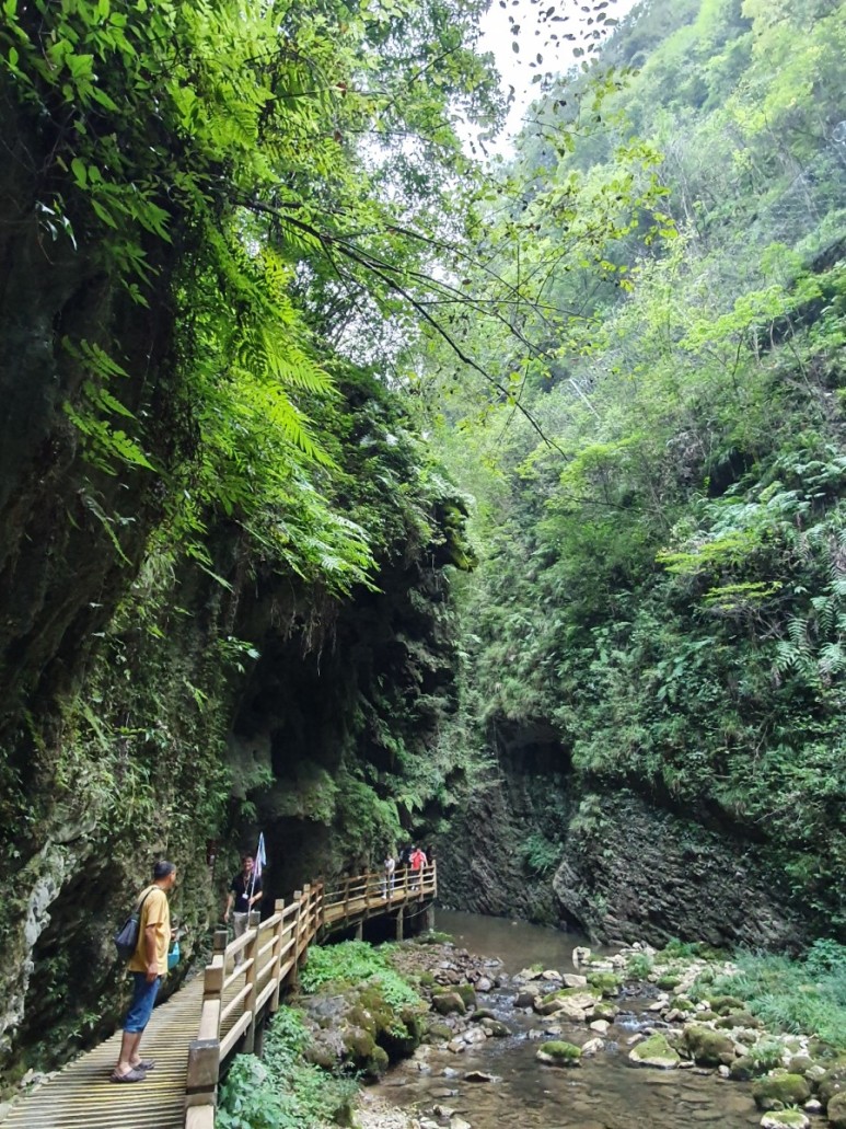 계곡을 끼고 펼쳐지는 높은 봉우리를 보고 가노라면 땅주변에는 진귀한 나무와 꽃, 풀, 살구나무, 해당화 등이 자라고 있고 산쪽으로 바라보면 기기한 봉우리들이 병풍처럼 늘어선 모습이 마치 한 폭의 산수화-그림이고 이는 세상에서 가장 아름다운 협곡이 아닐수없다할것이다 . 황석채(黃石寨) 정상에서 내려가다 보면 등산로 옆의 봉우리 삼림과 절벽의 장관 등 시야 내에 들어오는 모든 봉우리와 숲의 기이한 장관 속으로 빨려 들어가 신선이 되고만 기분이 자신도 모르게 들것이다..