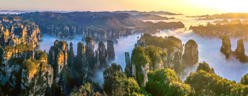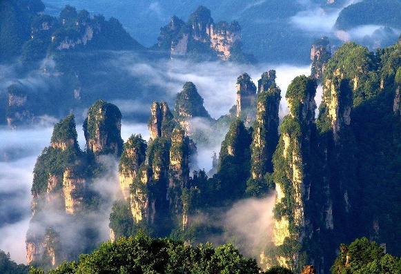 원가계: 영화 '아바타'의 배경이 된 것으로 알려진 원가계는 독특한 형태의 석영사암 봉우리들이 숲과 어우러져 기묘하고 환상적인 풍경을 연출합니다. 자연의 창조력에 대한 경이로움과 함께 영화라는 문화 콘텐츠와의 연계를 통하여 관광객들에게 특별한 경험을 제공합니다.