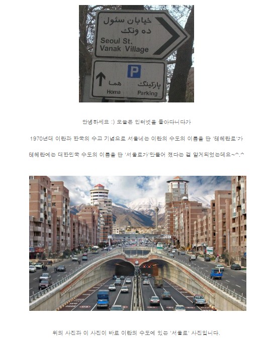 @ 이란의 수도 테헤란에도 서울거리가 존재하고 있을정도로 역사적 친교가 두텁습니다