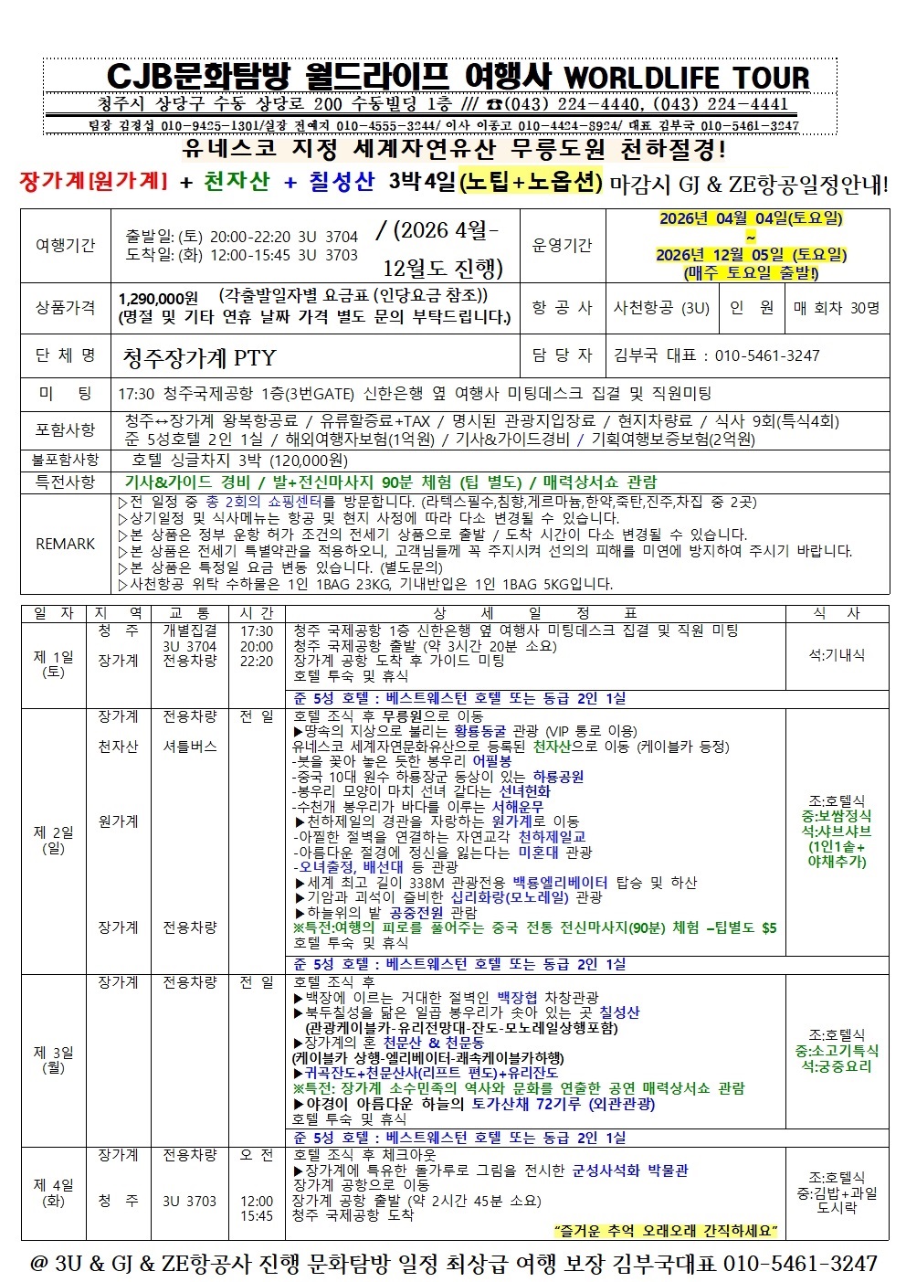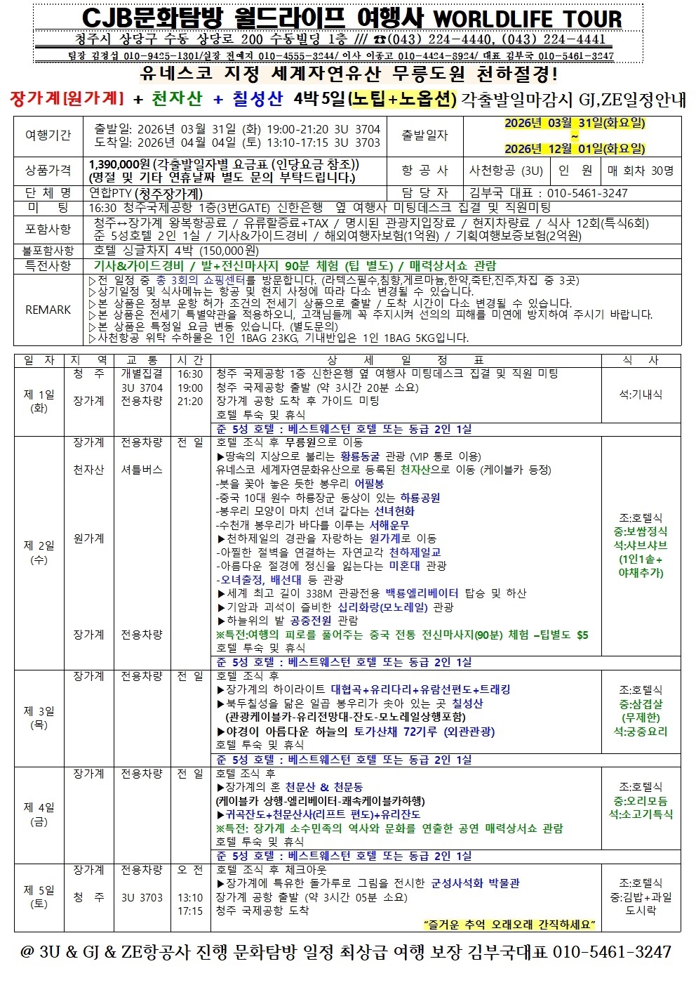 2026년 청주 장가계 직항 천하절경 CJB문화탐방 최상급 검증된여행 일생일대 대절경 감격 럭셔리 일정보장 , 장가계 베스트셀러 여행! 전국예약센터 월드라이프여행사 043-224-4440