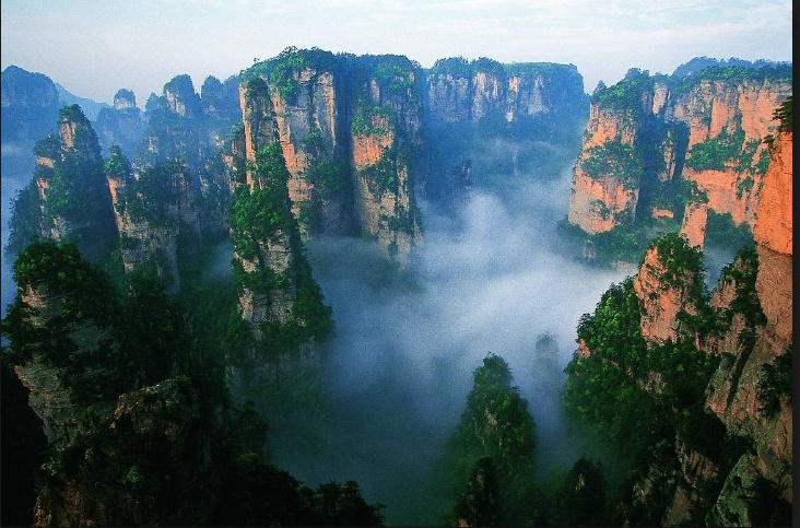 장가계지역 전체 풍경구의 면적은 264제곱키로에 이르고 그어디를 가나 사람의 눈을 의심하게하는 기괴한 봉우리가 수없이 치솟아 있는 모습은 자연의 신비감을 넘어 신에 대한 존경심까지들게한다. 대힛트한 3D영화 아바타의 배경을 가장 많이 촬영한 지역으로 장가계는 몽환적이며 희한한 모습을 연출하고있는 상상속에서나 볼수있으나 수많은 현상속의 실제 봉우리를 보게되면 신이만든 기묘한 마술을 바로 장가계에서 보고있다는 착각이 들 정도이다.