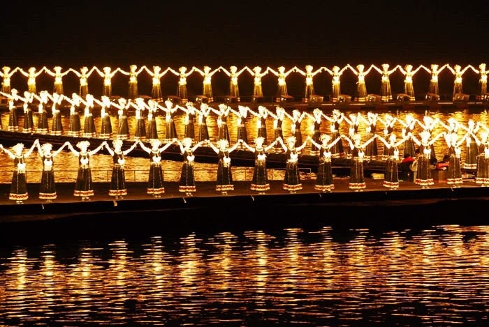 이강·도화강을 인공호수로 연결하여 유람하는 수상관광 + 아름다운 총천연색 조명연출로