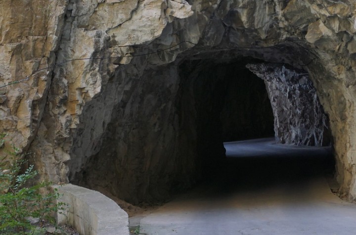 만선산 입구에서 18인승 미니버스를 타고 정상부로 이동하다 보면 만나게 되는 손으로 만들어진 암벽터널을 지나가게된다.