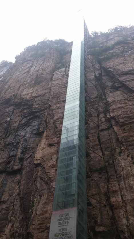절벽 내부를 수직 이동 시키며 자연 암반 내부를 체험하는 호기심 넘치는 엘리베이터