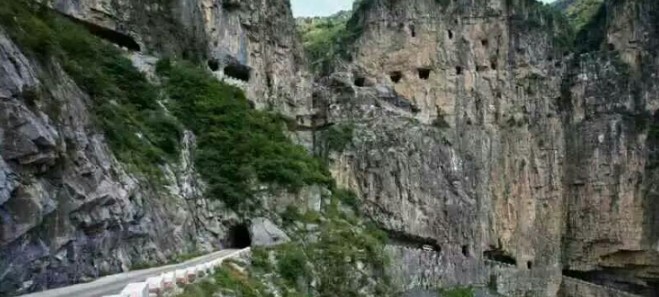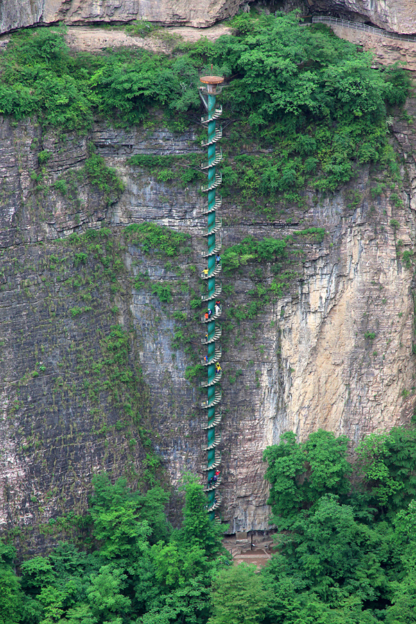 차량 1대가 겨우 지나갈 수 있는 암벽터널의 길이는 무려 1250m. 암벽 너머에 자리잡은 마을 사람들은 처음에 이 암릉을 넘나들며 외부세계로 드나들었다. 암벽을 오르내리던 많은 마을 주민과 학생들이 수백미터의 가파른 절벽에서 떨어져 죽는 사태까지 발생되곤하였다.. 이에따라 마을사람들은 마침내 1972년 이 암벽에 터널을 뚫기로 결심한다. 마을주민들은 오직 정과 망치만을 가지고 5년의 대역사 끝에 터널을 완성했다. 터널작업을 주도한 7명 중 1명이 당시 떨어져 숨졌으며, 현재 2명이 이 마을(남평촌)에 생존해있다. 당시 모택동 국가 주석은 이들에게 '영웅' 칭호를 내렸고 그기념비가 입구에 자랑스럽게 설립되어있다.. 천길 낭떠러지에 밧줄에 몸을 의지한 채 암벽을 기계없이 손으로 정과 망치로만 뚫었다고 하니, 인간의 놀라운 강인함과 그 끈기적 위대함에 고개가 절로 숙여진다할것이다. 만선산 정상부에 위치한 마을은 중국의 전통을 계승하고있는 농촌풍습을 그대로 지니고있다. 이곳은 영화 서유기의 촬영지로서 서유기가 날라다니는 배경이 된곳으로 유명하다. 많을 때는 하루 6-7만 명까지 찾아올 정도로 중국의 대표적 관광지로 발전하고 있다할것이다.