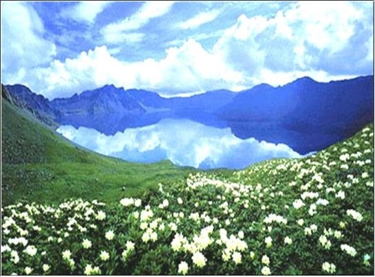 ① 뛰어난 자연경관 가치로서 천지의 장엄함, 장백폭포, 고산 초원이 펼처저있고