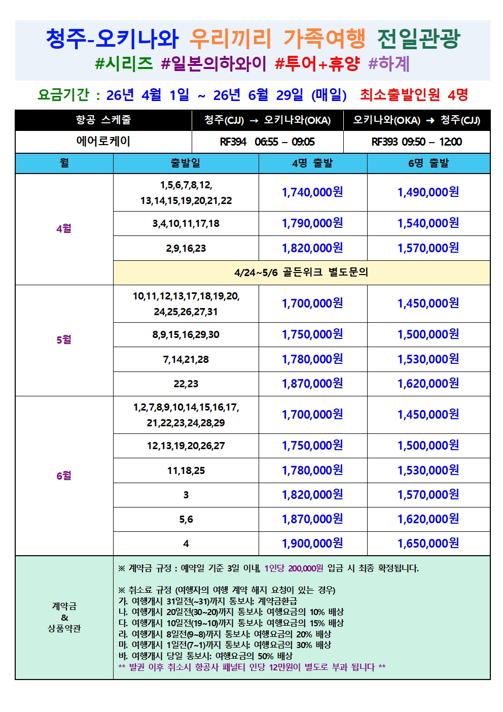 청주공항 2026년 진행 전세계가 인정한 한국관광객 최고 인기 베스트 휴양 힐링 치유 관광지 오키나와 & 발리 가족여행 전국예약센터 월드라이프여행사 043-224-4440