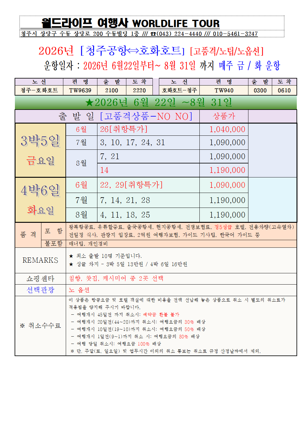 월드라이프여행사 043-224-4440 / 043-224-4441