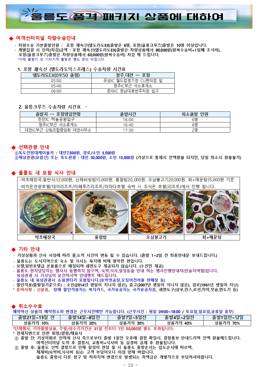 2026년 대전,청주,천안 울릉도 전국예약센터