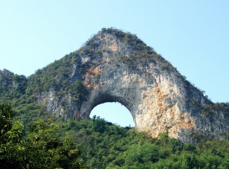 달 모양으로 관통된 월량산을 잊지못하게하는 대규모 자연적인 관통 아치형 지형