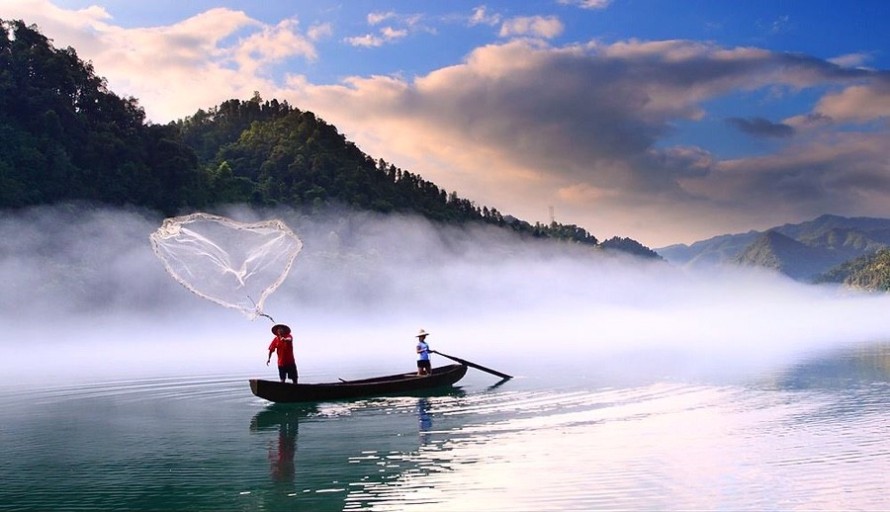 최고 등급 5A 국가관광지인 동강호는 4월 중순부터 요즈음은 기온변화로 11월 중순까지 일출과 일몰 전후 2시간 동안 피어올랐다가 사라지는 아름다운 물안개로 이름난 곳이다. 호수 내 무수히 분포하고 있는 섬의 경관이 매우 신비롭고 아름다우며 운치가 넘처난다. 물안개가 피어오를 시간이면 조각배를 탄 초로의 노인이 나와 투망을 던지는 멋진 모습을 연출해 준다. 이 노인은 실제로 동강호에서 조업하던 어부였다고 한다. 고기를 낚던 어부가 이젠 사람을 낚는 살아있는 전설속의 어부가 된 셈이다.