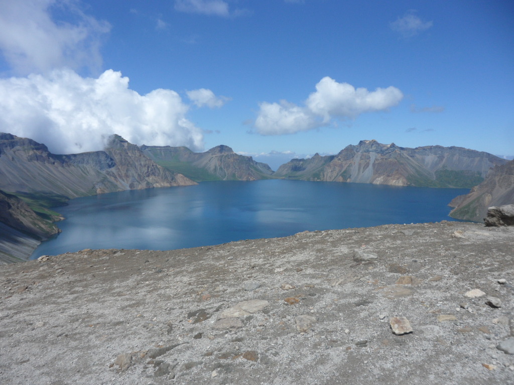 이 화산 대폭팔로 인해서 엄청난 크기의 천지가 생겨났고 그둘레는 무려 14.4키로미터이며, 최대수심은 384미터(평균수심204미터)로서 천지를 둘러싸고있는 2500미터이상의 16개봉우리 안에 만들어진 화산호수로는 세계에 어디에도 없는 유일한곳으로 지질학자들과 화산학자들은 이를 경이롭게 평가하고 있다,