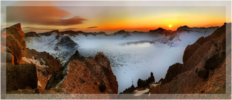 이 높은 하늘아래 펼처진 천지의 대장관은 기막히고 놀랍고 넋을 이를정도로 아름다우며 천지를 들러싼 웅장하고 장퀘하고 신성스러운 16개의 봉우리는 한민족을 태두시킨 모태성지로서 우리모두의 성스러운 고향이 아닐수 없을 정도로 경이롭고 신비스러운 자태를 보여주고 있다할 것이다.