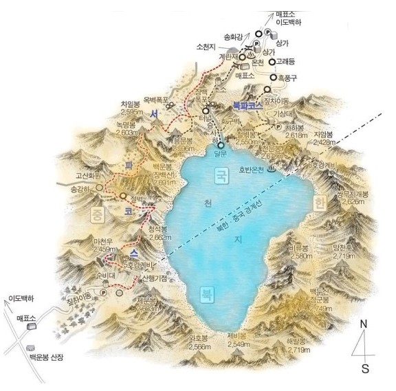 · 남쪽 천지 조망: 북파와 서파가 천지를 ‘조망’하는 느낌이라면, 남파는 천지를 ‘병풍처럼 감싸는’ 시야를 제공합니다. 계절에 따라 중국정부 개방공고 여부가 엄격해 접근성이 낮은 대신, 인파가 적어 가장 고요한 천지를 만날 수 있습니다.